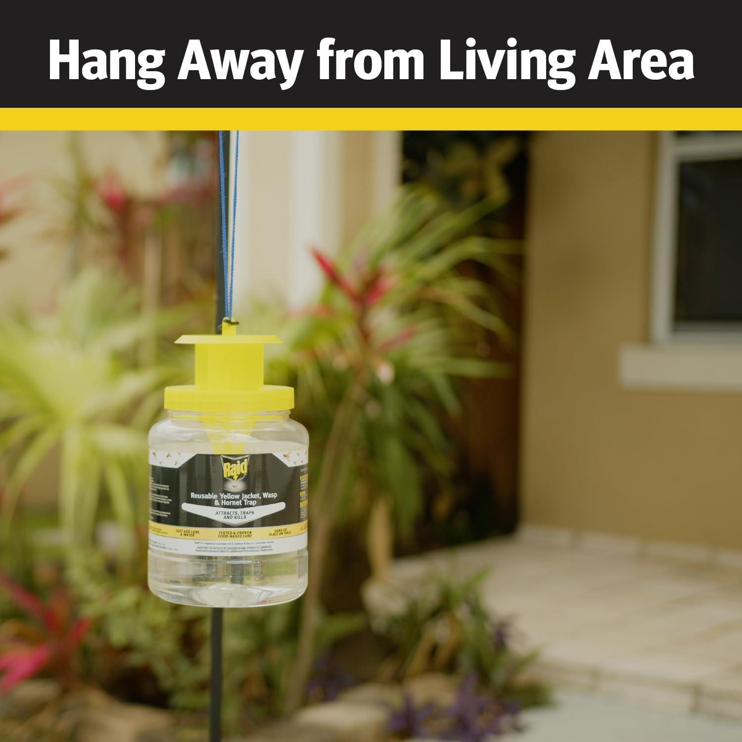 Attract, Trap & Eliminate: Raid Reusable Yellow Jacket, Wasp & Hornet Trap Jar attracts and captures common stinging insects with a food-based lure. It’s a reliable outdoor solution to help prevent painful stings around patios, gardens, and entryways